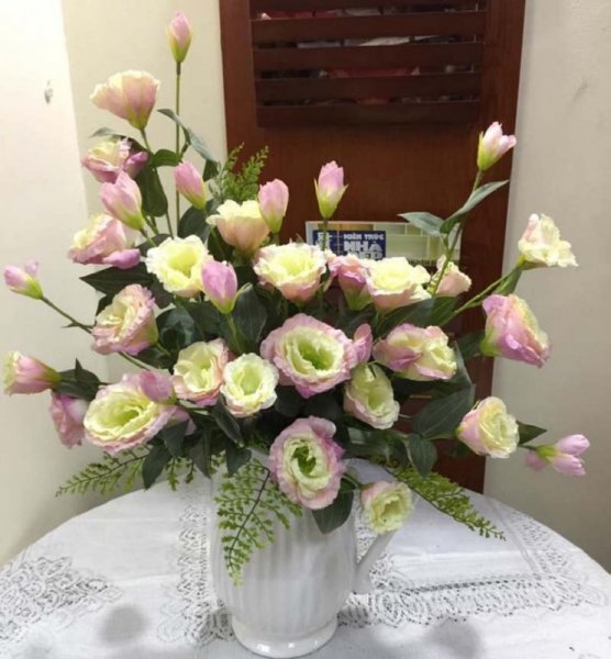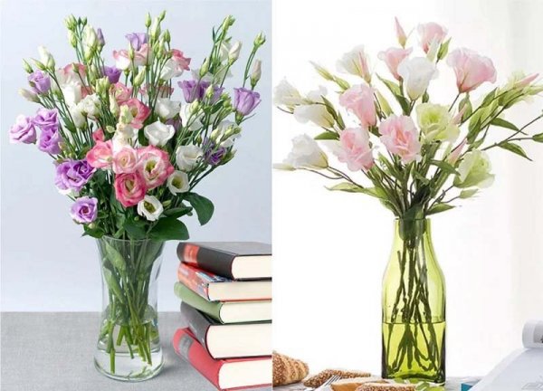 Cầu kỳ hơn một chút thì bạn có thể mua thêm nhiều loại hoa và màu hoa khác nhau để cắm cùng hoa cát tường. Bạn thấy mẫu hoa bên dưới đẹp chứ? Nhưng nó chống chỉ định với những cô nàng nào có ít hoa tay đấy nhé. Tham khảo ngay thôi.
