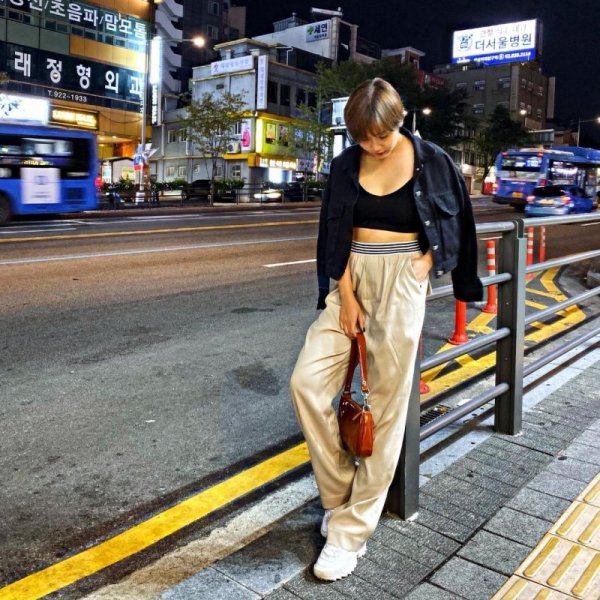 Vẫn là công thức mix đồ cơ bản giữa quần suống ống rộng với croptop nhưng hình ảnh của Huyền Lizzie chưa bao giờ nhàm chán nhờ việc phối hợp màu sắc linh hoạt. Chiếc áo croptop màu đen mix cùng quần thể thao trắng và một đôi giày sneaker màu xanh nõn chuối là cách phối màu táo bạo.