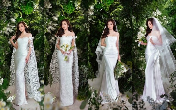 Từng là nàng thơ của Lê Thành Hoà trong BST đồ cưới năm 2021, Đỗ Mỹ Linh chạm đỉnh nhan sắc khi khoe nhan sắc đẹp tựa nữ thần trong những bộ váy cưới từ phom dáng cổ điển đến hiện đại. Vẻ đẹp "băng thanh, ngọc khiết" cùng thần thái quyến rũ đã giúp Đỗ Mỹ Linh toả sáng trong từng bức ảnh.