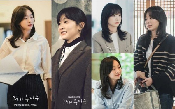 Tham gia bộ phim đình đám Our Beloved Summer, Kim Da Mi vào vai một trưởng phòng marketing với mái tóc tỉa layer mái mưa trẻ trung và phong cách thời trang công sở thanh lịch đúng chuẩn nhưng vẫn mix&match trẻ trung, tinh tế.