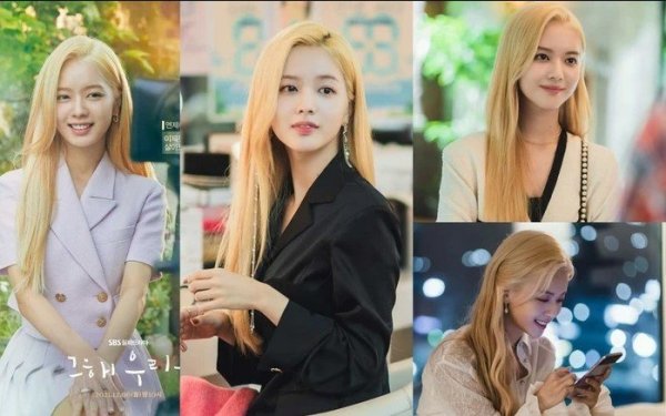 Roh Jung Ui trong Our Beloved Summer là một nữ thần tượng Kpop nên cô nàng có gu thời trang hút mắt là điều đương nhiên. Nhưng điều gây ấn tượng của cô nàng chính là mái tóc màu vàng nổi bật cùng phong cách trang điểm tinh tế. Với mái tóc và nhan sắc thanh tân này, vẻ đẹp của cô "tỏa sáng" theo đúng nghĩa đen.