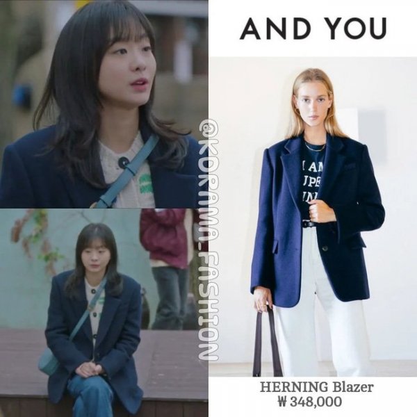 Trong phim mới, Kim Da Mi là một tín đồ của blazer. Cô thường chọn màu sắc trung tính, mix với ái thun trắng và để kiểu tóc lửng tỉa layer trẻ trung, thời thượng. Bạn có thể hoàn thiện set đồ với quần âu cùng tone và giày sneaker hoặc giày loafer để tổng thể năng động hoặc thanh lịch tuỳ bạn muốn.