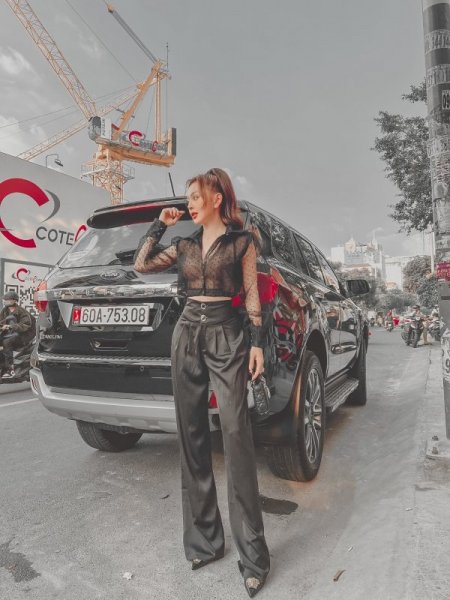 Áo sơ mi xuyên thấu dáng croptop được cô nàng mix với quần cạp cao ống suông vừa gợi cảm vừa cá tính. Một đôi giày cao gót mũi nhọn cũng giúp Trang Nemo "kéo chân" triệt để.