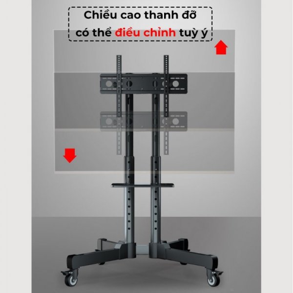 Giá treo tivi di động là loại có gắn thêm bánh xe ở phần dưới chân giá, giúp thiết bị có thể di chuyển trên mọi mặt phẳng của nền nhà. Với thiết kế này, bạn có thể dễ dàng mang tivi vào phòng khách, xuống nhà bếp hay phòng ngủ tùy theo ý muốn.