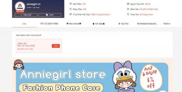 Anniegirl.vn cũng là cái tên “nổi đình nổi đám” trong số những shop bán ốp lưng đẹp trên Shopee mà bạn có thể lựa chọn. Shop có tới hơn 306K người theo dõi cùng với đó là nhận được đánh giá tích cực từ hơn 292K khách hàng. Đây là con số “khủng” mà shop bán hàng nào cũng mơ ước cho xem.