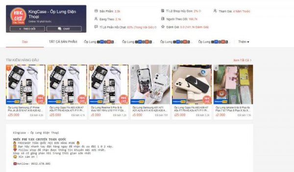 Nếu bạn muốn mua ốp điện thoại dành riêng cho thương hiệu “táo cắn dở” thì ghé ngay shop bán ốp lưng điện thoại trên Shopee mang tên KingCase nhé. Số lượng người theo dõi shop không kém gì so với các thương hiệu khác mà Shopee giới thiệu phía trên đâu. Đặc biệt ấn tượng là hơn 141K người theo dõi đánh giá chất lượng shop lên đến 5 sao.