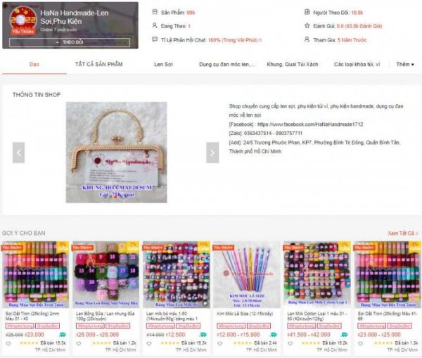 Nhắc đến địa chỉ shop bán phụ kiện làm túi xách Handmade không thể không nói đến shop Hana handmade. Hana handmade chuyên cung cấp các mặt hàng như vòng, dây da, hạt cườm, hoa vải, kim chỉ, ren, ruy băng,… với giá cực kỳ rẻ. Bạn có thể đặt hàng nhanh chóng qua Shopee chỉ mất 2-6 ngày giao hàng. Ngoài ra, shop được khá nhiều người mua hàng đánh giá sản phẩm tốt, rẻ, phù hợp túi tiền của đại đa số khách hàng.