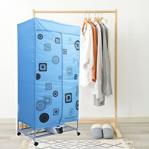 - Bước 2: Móc quần áo lên giá treo sau rồi kéo khóa kín tủ lại. Để quá trình sấy nhanh hơn thì bạn cần kéo thật kín tủ để đảm bảo hơi nóng không bị thoát ra ngoài.