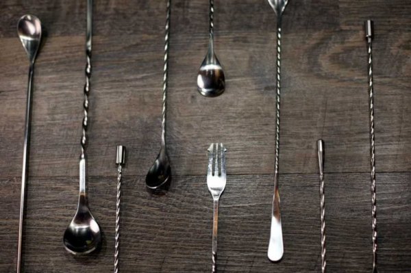 Các loại Bar spoon được thiết kế khá dài, hình xoắn ốc giúp thuận tiện cho việc khuẩy các ly cao, một đầu có dạng hình muỗng, đầu còn lại có dạng thanh nhọn hoặc dạng hình nĩa để có thể gắn các loại trái cây, đồ trang trí cho đẹp mắt.