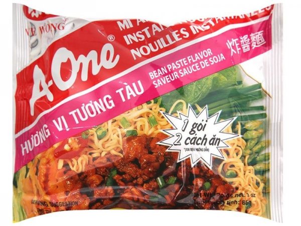 A-One là thương hiệu mì khá nổi tiếng được sản xuất tại Việt Nam. Đặc biệt sản phẩm mì trộn A-One hương vị tương tàu hiện đang là loại mì trộn được rất nhiều người yêu thích. Loại mì này sở hữu một hương vị khá đặc biệt đó là mùi tương tàu hấp dẫn, kèm theo đó là sợi mì nhỏ nhưng dai, ngon và không bị nở quá mức.
