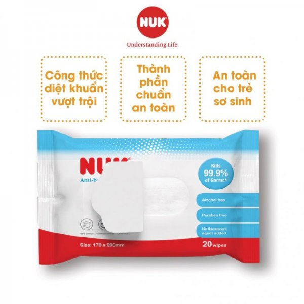 Khăn ướt diệt khuẩn NUK đã được SGS Thụy Sỹ – Tổ chức kiểm định chất lượng hàng đầu thế giới chứng nhận đạt tiêu chuẩn về sức khỏe và an toàn với 4 không đảm bảo an toàn cho bé là: Không cồn – Không chất tạo hương – Không chất tẩy trắng quang học – Không chất bảo quản. Bên cạnh đó là chất liệu 50% sợi polyester + 50% sợi visco kháng khuẩn tối ưu, thấm hút tốt.