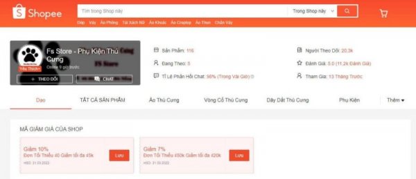 Đây là shop quần áo cho chó trên Shopee với hình thức bán hàng online. Cửa hàng chuyên cung cấp các loại quần áo cho chó và mèo, cùng với đó là các phụ kiện thú cưng đi kèm. Tại đây, bạn có thể tìm thấy các loại quần áo cho chó với đa dạng mẫu mã, màu sắc và chất liệu. Không chỉ quần áo, nếu bạn thích sự đáng yêu và dễ thương thì cũng có thể tìm thấy các mẫu váy xinh xắn cho bé cún tại Fs Store.