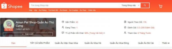 Amun Pet là shop quần áo thú cưng với kho hàng đặt tại Hà Nội. Dù là shop mới có mặt trên gian hàng Shopee nhưng số lượng người theo dõi lại gây ấn tượng với con số 16,9 nghìn và đánh giá đạt tối đa 5 sao. Điều này cho thấy người tiêu dùng khá hài lòng về chất lượng sản phẩm cũng như dịch vụ của shop.