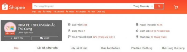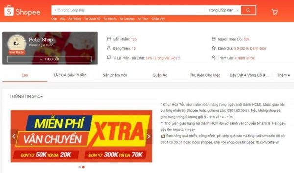 Petie Shop đã có mặt tại sàn thương mại điện tử Shopee được hơn 4 năm, sở hữu lượng người theo dõi lớn với hơn 32 nghìn và sao đánh giá tối đa 5.0. Bạn có thể tìm thấy hầu như là mọi thứ liên quan đến thú cưng tại đây.