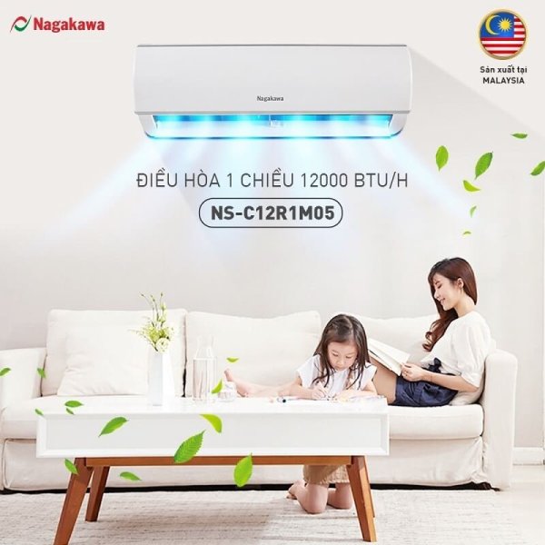 NS-C12R1M05 là một trong những loại máy lạnh một chiều giá rẻ bán chạy nhất của Nagakawa hiện nay. Trong nhiều bài review máy lạnh Nagakawa, NS-C12R1M05 được đánh giá cao nhờ hiệu quả làm lạnh nhanh, khả năng tiết kiệm điện năng, thân thiện với môi trường. Em này có công suất lên đến 12.000BTU, rất phù hợp với không gian các phòng diện tích từ 15 – 20m2.