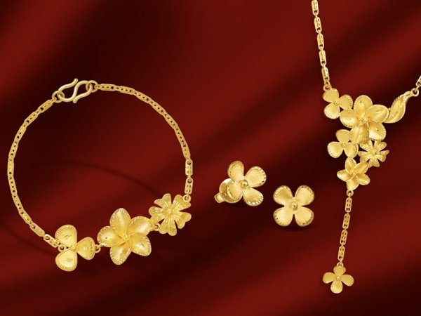 Sính lễ vàng cưới gồm kiềng, hoa tai và lắc tay (Nguồn: ngoctham.com)Những câu hỏi thường gặp về mâm quả đám cưới