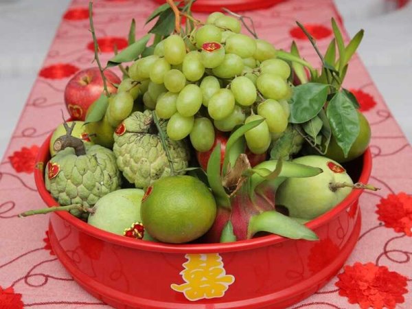 Trái cây là sính lễ không thể thiếu trong mâm quả cưới của người Việt. Các loại quả tươi ngon và căng mọng như táo. lê. cam, nho, nhãn,…. sẽ được dâng lên cúng tổ tiên cùng với rượu và trà.