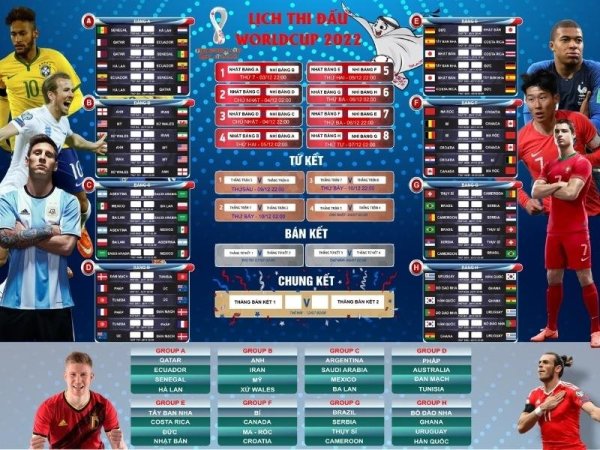 Lịch thi đấu World cup 2022 (Nguồn: 24h.com)Tuy nhiên do mùa hè ở Qatar có nhiệt độ khá cao hơn 40°C có thể ảnh hưởng đến sức khỏe và tinh thần của các cầu thủ cùng các cổ động viên. Vì vậy, ngày 20/3/2018, Liên đoàn Bóng đá Quốc tế (FIFA) đã quyết định dời giải đấu sang mùa đông như năm nay.