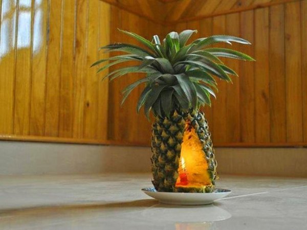 - Dựng trái thơm trên lavabo và đặt một ngọn nến đã được đốn cháy vào bên trong.