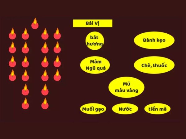 Các bạn nên lưu ý, tất cả đồ dùng để cúng đều phải có màu vàng hoặc gói/trải giấy vàng xuống dưới. Nếu bạn có sử dụng rìu, hãy để cây rìu chặn trên giấy. Dùng vải màu vàng che kín bài vị và rìu rồi đặt ra phía sau 3 nén hương đã dâng.