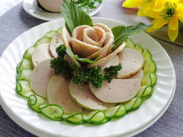 Giò chả hay giò lụa cũng là một thực đơn ngày Tết không thể thiếu trong mâm cỗ. Món ăn được làm từ hai nguyên liệu cơ bản là thịt nạc thăn lợn giã nhuyễn, gói trong lá chuối và luộc chín.