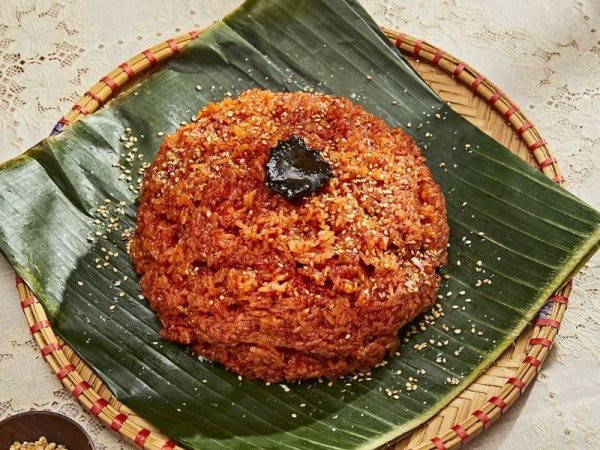 Trong các món cúng ngày Tết, xôi gấc là một món ăn rất được ưa chuộng vì mang màu đỏ tươi tượng trưng cho sự may mắn. Xôi gấc được nấu từ gạo nếp, trộn với gấc tươi, nước dừa nên có màu đỏ rất đẹp và hấp dẫn. Khi ăn bạn sẽ cảm nhận được vị dẻo của gạo nếp, vị béo của nước cốt dừa, vị ngọt bùi của đường đậu. Xôi gấc giúp tăng hương vị thơm ngon và bổ dưỡng cho thực đơn ngày Tết.
