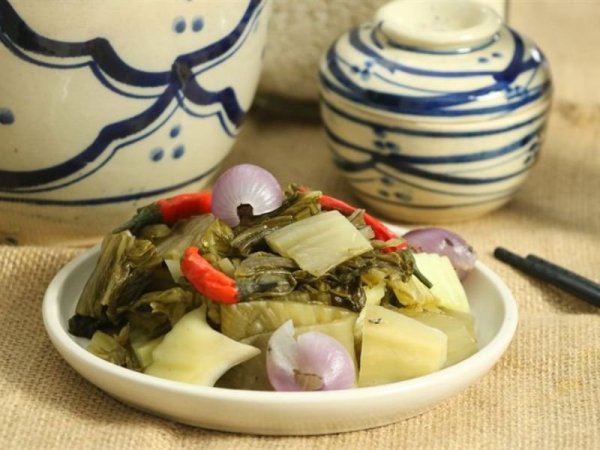 Ngoài dưa món ngày Tết, dưa cải chua cũng là một lựa chọn thanh đạm và hấp dẫn, nhất là khu vực phía Bắc. Độ giòn tươi của cải cùng vị chua mặn được hoà quyện vào nhau tạo nên món ngon ngày Tết với hương vị đậm đà. Bạn có thể xào dưa cải chua cùng thịt, ăn kèm cơm nóng để đổi vị trong những ngày xuân tại nhà.
