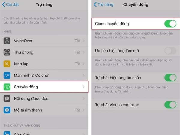 - Tắt tính năng giảm chuyển động: Cài đặt > Cài đặt chung > Trợ năng > Giảm chuyển động > Tắt tính năng giảm chuyển động.
