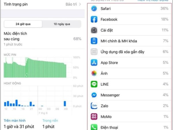 Một mẹo tiết kiệm pin iPhone khác là bạn cần chú ý kiểm soát tổng thời gian sử dụng thực tế tính từ lúc sạc đầy và việc sử dụng pin của từng ứng dụng trên máy. Qua đó, bạn sẽ biết ứng dụng nào tiêu hao pin nhiều nhất để điều chỉnh quá trình sử dụng.