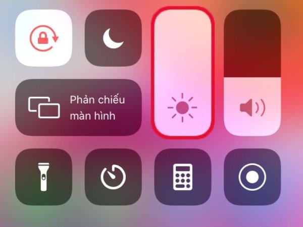 Các điện thoại iPhone hiện nay có độ phân giải màn hình rất cao. Do đó, bạn có thể giảm hao pin iPhone bằng cách giảm độ sáng màn hình. Từ màn hình iPhone, bạn hãy vuốt từ cạnh dưới lên để vào Trung tâm Kiểm soát ở màn hình chính, kéo thanh trượt độ sáng giảm đến mức trung bình thấp.
