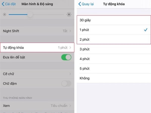 Màn hình vẫn sáng khi không dùng đến cũng là một nguyên nhân gây hao pin. Cách làm pin iPhone trâu hơn là đặt chế độ tự động khoá với thời gian ngắn nhất để giảm thiểu điều này.