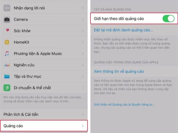 Cách thực hiện khá dễ dàng: vào Cài đặt > Quyền riêng tư > Quảng cáo > Bật Giới hạn theo dõi quảng cáo.