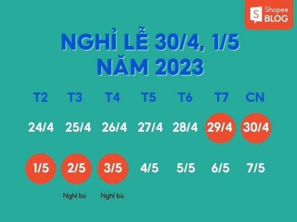 30/4 nghỉ mấy ngày? Lịch nghỉ lễ năm 2023 (Nguồn: Shopee Blog)Shopee và Shopee Express có nghỉ lễ 30/4, 1/5 không?