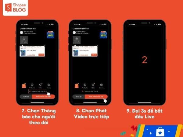 Bước 9: Bạn sẽ có 3 giây đếm ngược để chính thức bắt đầu buổi livestream trên Shopee Live.