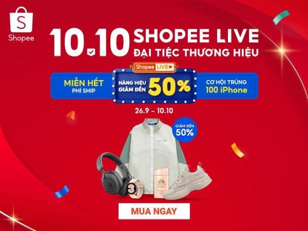 Shopee 10.10 Shopee Live Đại Tiệc Thương Hiệu (Nguồn: Shopee.vn) MUA NGAY> Xem thêm: 10 hot deals không thể bỏ lỡ khi săn sale Shopee 10.10