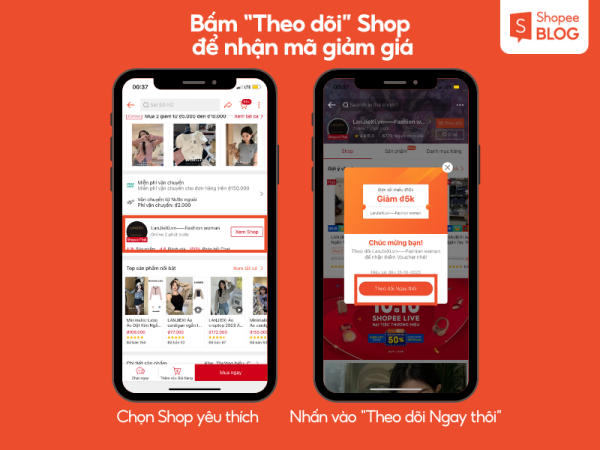 Bấm “Theo dõi” Shop đang chạy chương trình Ưu đãi Follower để nhận mã giảm giá. (Ảnh: Shopee Blog)> Xem thêm: Cách sử dụng mã giảm giá Shopee tiết kiệm khủng, mua sắm siêu hời