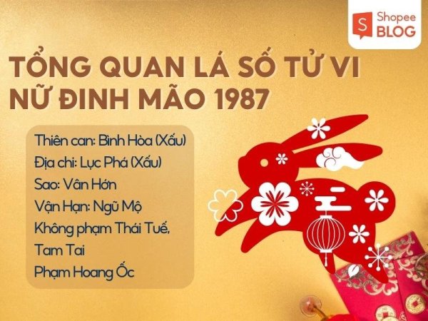 Nữ 1987 mệnh gì? Vận niên cho nữ sinh năm 1987 (Nguồn: Shopee Blog)Vận hạn của nữ sinh năm 1987