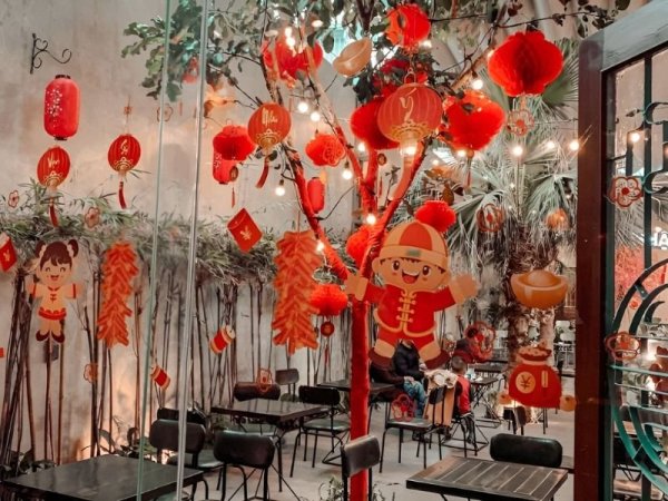 Trang trí quán cafe tết pha trộn cổ điển và hiện đại