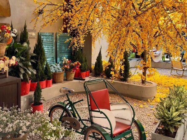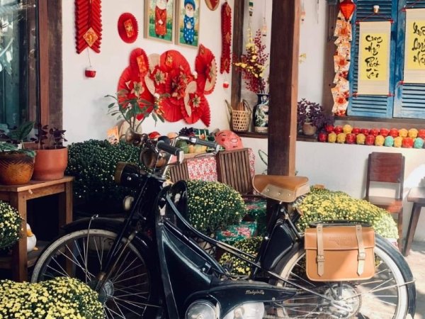 Trang trí tết quán cafe theo phong cách vintage cổ điển là một trong cách decor được yêu thích và lăng xê nhiều nhất trong thời gian gần đây. Cách trang trí tết cho quán cafe này thường tạo nên sự hoài niệm với những món đồ trang trí nhà cửa như xe đạp cũ, xe máy cổ hay xe xích lô hay những bộ đồ gốm cũ kết hợp với những chậu hoa cúc vàng hay cành đào tươi. Những món đồ trang trí cổ điển này khi bày trí sẽ mang đến sự độc đáo, sáng tạo và tinh tế giúp quán cafe của bạn trở nên sinh động hơn rất nhiều.