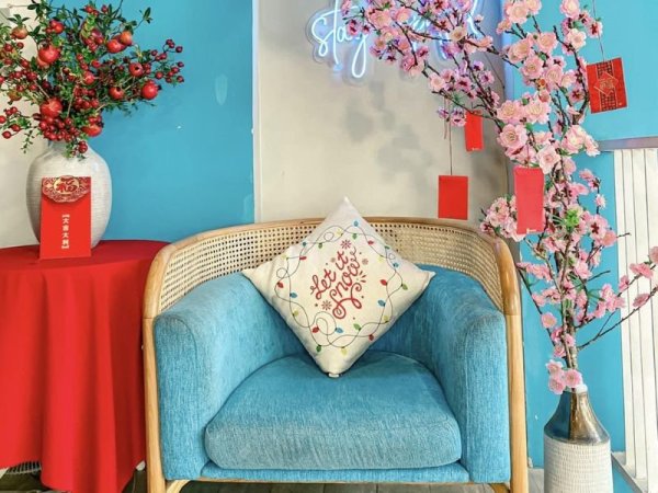 Ý tưởng trang trí tết cho quán cafe kết hợp giữa truyền thống và hiện đại có thể giúp bạn thỏa sức sáng tạo và bày trí theo ý muốn mà không cần tuân theo khuôn mẫu nào. Ngoài những màu sắc truyền thống vốn có của ngày tết như vàng, đỏ hay cam bạn có thể kết hợp thêm những gam màu mang hơi thở hiện đại như xanh, hồng, trắng để tạo nên sự độc đáo cho không gian quán. Ngoài ra những đồ vật trang trí mới mẻ như tranh treo tường hay ghế salon cũng có thể góp thêm không khí ngày tết sang trọng và hiện đại cho quán của bạn đấy.