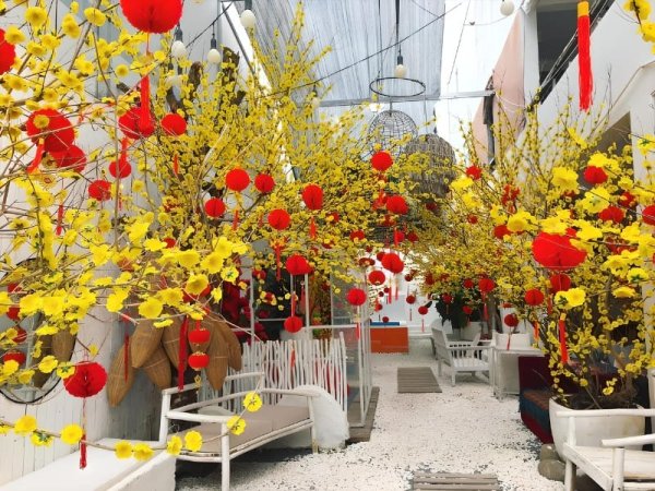 Một mẫu trang trí tiểu cảnh Tết cổng chào với hoa mai đầy thu hút (Nguồn: AHT’s House) MUA NGAY Các trung tâm thương mại, quán cafe và doanh nghiệp thường lựa chọn tiểu cảnh ngày Tết có cổng chào kèm các câu thư pháp để thu hút khách hàng (Nguồn: Ngọc Sang – Pinterest) MUA NGAYMẫu tiểu cảnh chụp hình Tết cho quán cafe