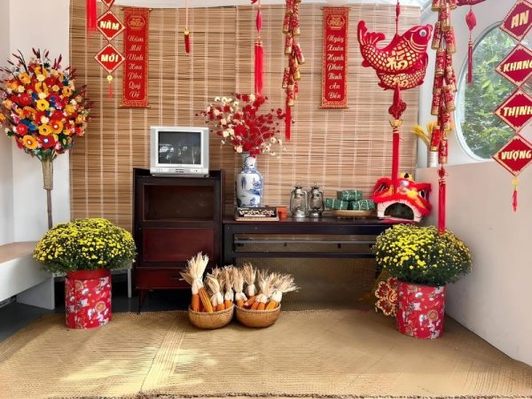 Trang trí tiểu cảnh Tết xưa với những vật dụng đặc trưng của những năm 80, 90 (Nguồn: Bo Décor Vietnam – Festivals & Celebrations)Decor tiểu cảnh Tết trong nhà