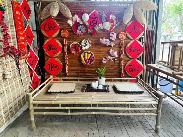 Mành tre là sản phẩm thường xuyên xuất hiện trong các bài hướng dẫn trang trí tiểu cảnh Tết xưa hay Tết làng quê. Mành tre được dùng để làm nền, giúp các phụ kiện khác như cành mai, câu đối, mẹt tròn,… được nổi bật hơn. Vậy nên nếu không gian trang trí có một mảnh tường lem luốc hay đang được sơn màu không phù hợp, mành tre sẽ là lựa chọn hoàn hảo để giúp tiểu cảnh Tết đẹp và lung linh hơn.