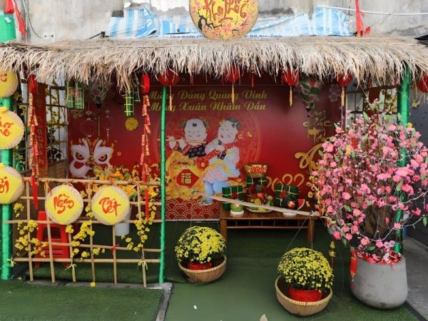 Một tiểu cảnh chụp hình Tết đẹp với cổng chào độc đáo còn là nơi check in sống ảo cực kỳ lý tưởng cho mọi người. Đây sẽ là phương thức quảng bá vô cùng hiệu quả khi họ đăng lên các nền tảng mạng xã hội như Facebook, Tiktok hay Instagram.