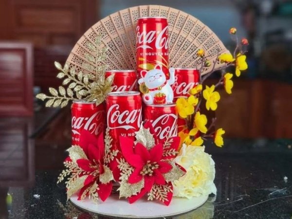 Nước ngọt Coca Cola được dùng phổ biến vì có sắc đỏ may mắn (Nguồn: Món ngon nhà nấu) Lon nước ngọt Coca Cola khi xếp chồng lên nhau tại hiệu ứng tròn đầy, viên mãn (Nguồn: Shopee.vn) Mua NgayTrang trí tháp nước ngọt tết bằng Pepsi