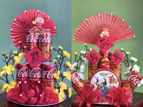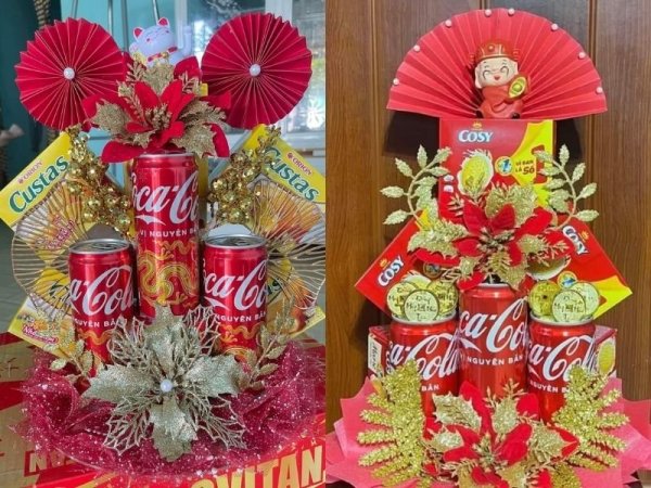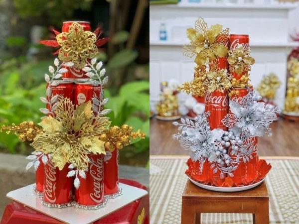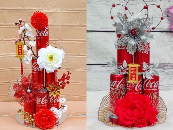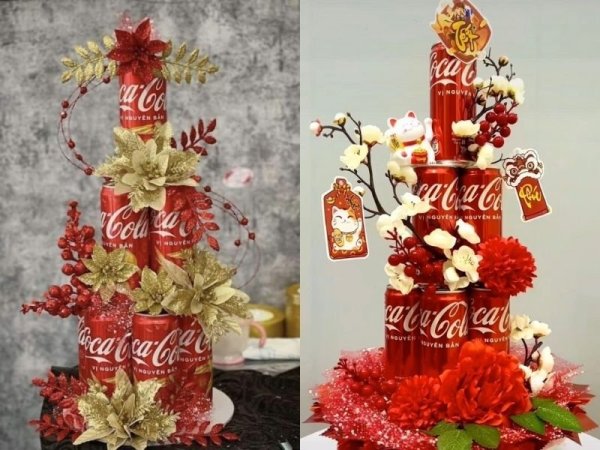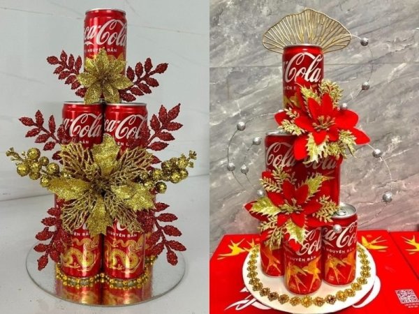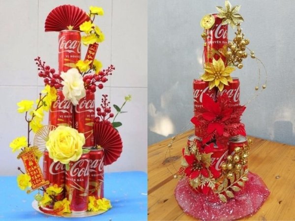 Làm tháp nước ngọt 9 lon nên chọn đồng nhất thương hiệu (Nguồn: limosa.vn) Bạn có thể nhấn nhá thêm vài phụ kiện như hoa mai giả để tăng sự bắt mắt và sinh động cho tháp (Nguồn: Shopee.vn) Mua NgayTrang trí tháp nước ngọt tết bằng Coca Cola
