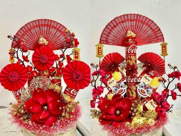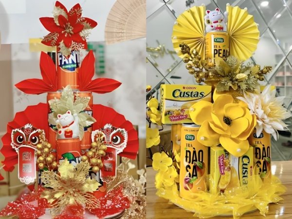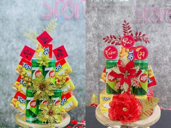 Trang trí tháp nước ngọt Tết kết hợp bánh Tết mới lạ (Nguồn: Nguyễn Thị Kim Cúc – Facebook) Mẫu tháp vừa thẩm mỹ vừa có giá trị kinh tế khi làm quà tặng (Nguồn: Nguyễn Thị Kim Cúc – Facebook) Mua Ngay> Xem thêm: Các loại bánh kẹo ngày Tết thơm ngon chất lượng, thích hợp làm quà tặng