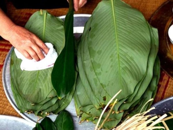 Lá dong là một chìa khóa giúp bánh chưng có màu xanh đẹp mắt hơn. Để có thể dễ dàng áp dụng cách gói bánh chưng bằng tay đẹp, bạn nên chọn lá dong có kích thước vừa phải và không quá non cũng không quá già. Bằng cách chọn những lá bóng, có màu xanh đậm và cuống nhỏ. Sau khi tìm được lá dong ưng ý bạn cần đem rửa sạch sẽ và phơi cho ráo nước sau đó dùng khăn sạch để lau khô trước khi dùng gói bánh chưng.