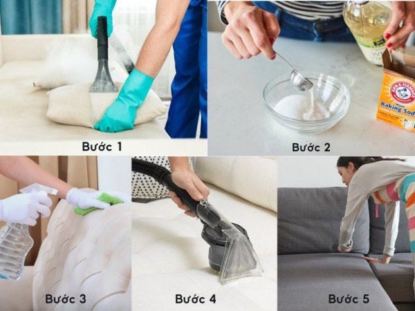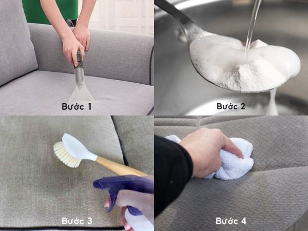 - Bước 2: Dùng dung dịch vệ sinh ghế sofa hoặc baking soda pha loãng với nước theo tỷ lệ 1:1 để làm sạch