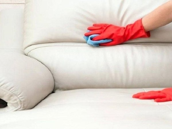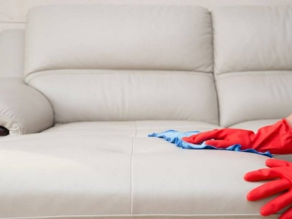 Dùng khăn mềm để lau sạch ghế sofa giả da (Nguồn: Btaskee) Chỉ nên lau ghế sofa giả da bằng khăn ẩm để hạn chế nước tiếp xúc vào lớp mút bên trong ghế (Nguồn: Nội Thất Xinh)Cách làm sạch ghế sofa da trắng